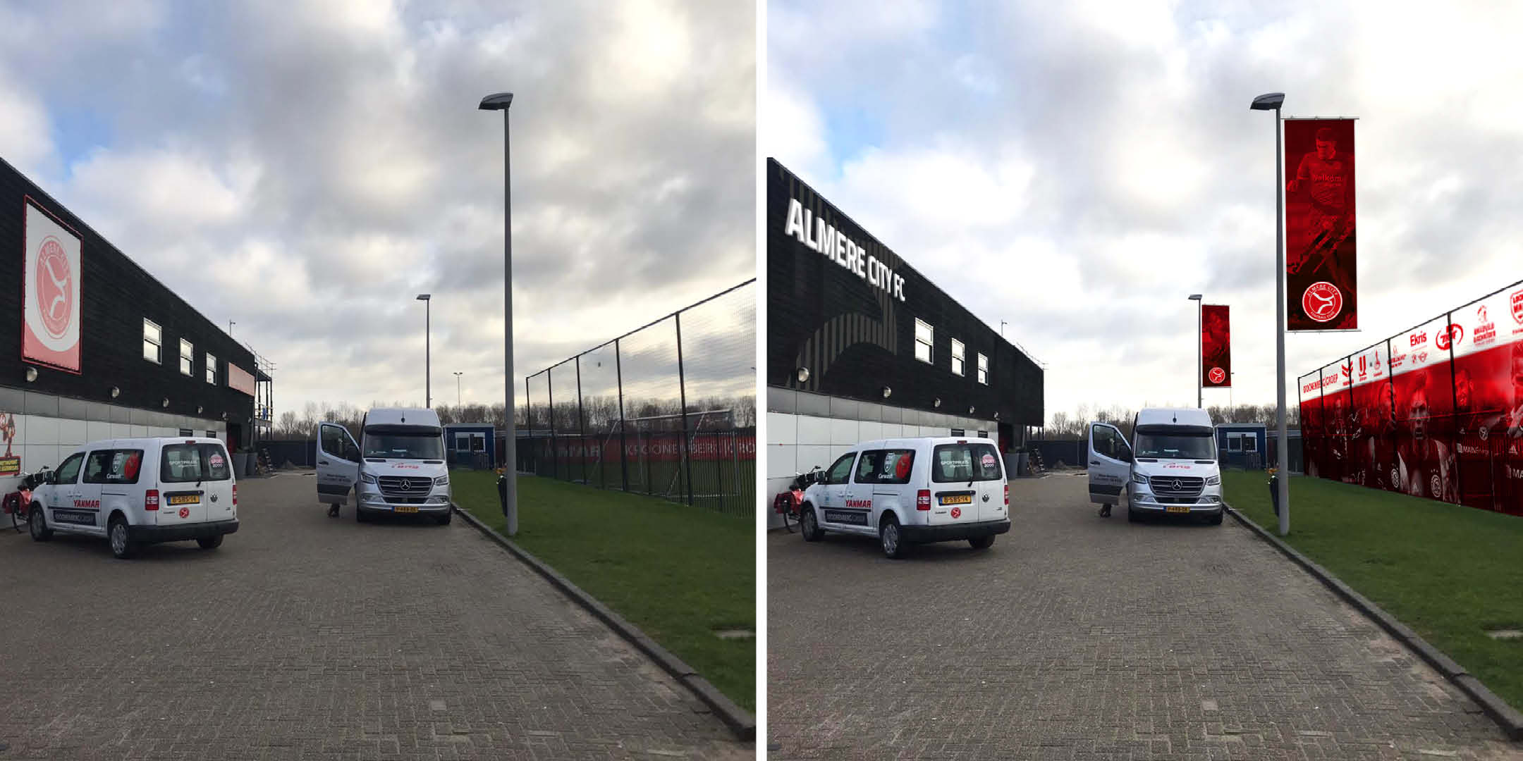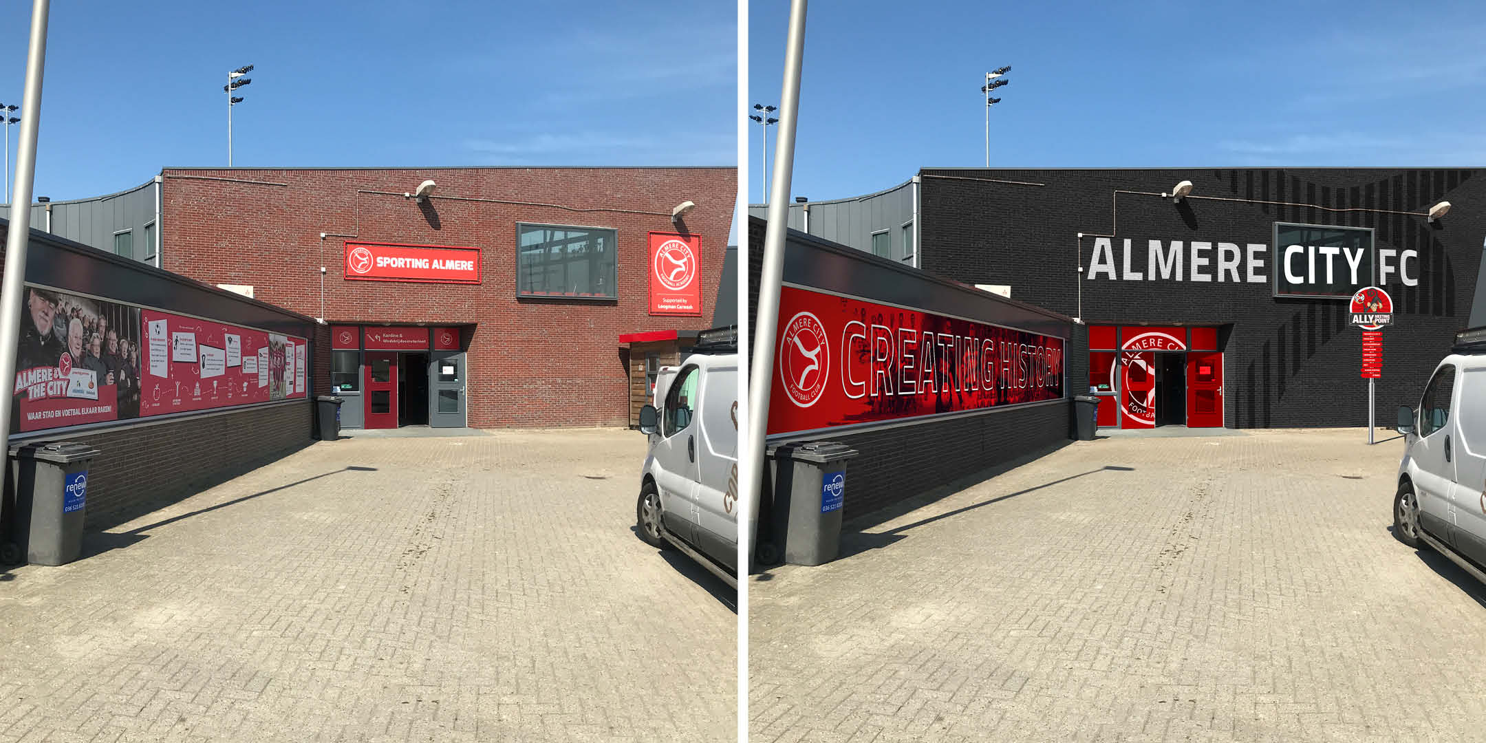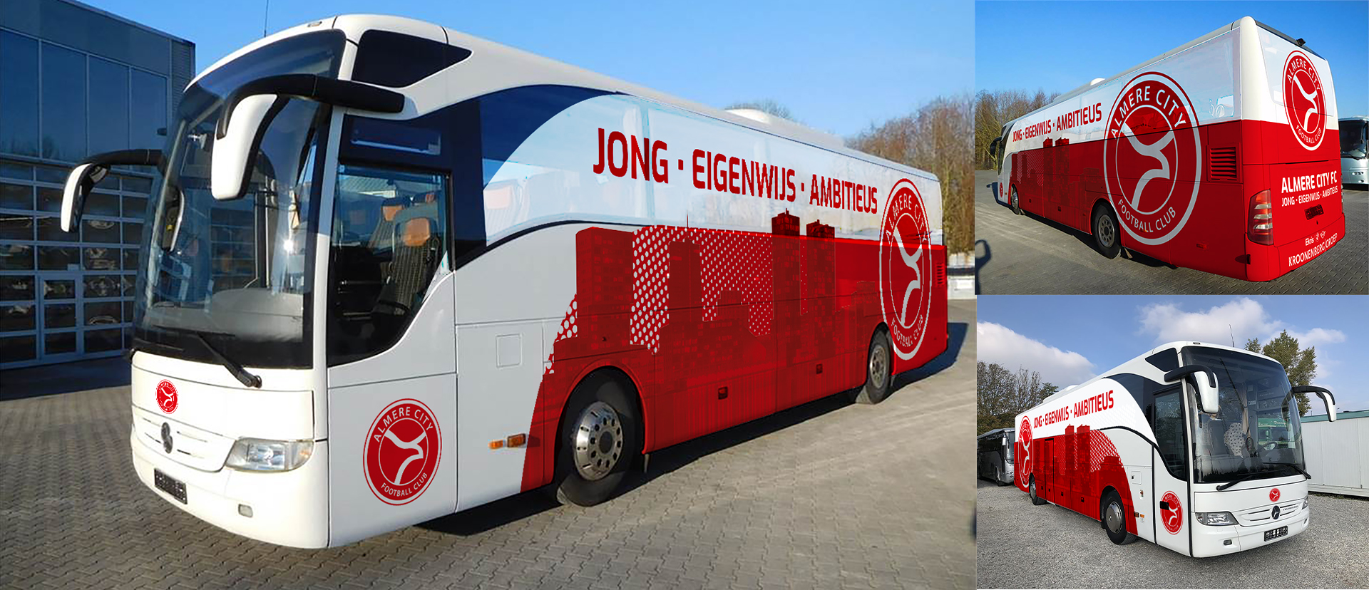 As a preferred supplier of Almere City for many years, I have created many expressions for the club during my work for 5th Corner / Creabea. You can think of simple DTP work like stadium banners but also many campaigns, fleetmarking and I even worked on the restyling of the stadium.